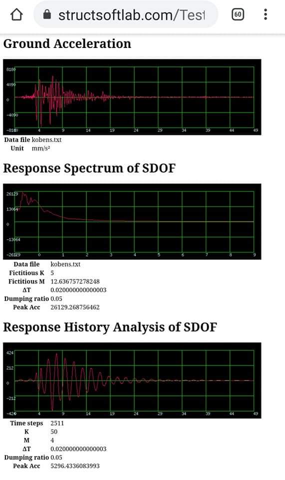 If one has accelerogram recorded by strong motion accelerometer, response spectrum graph can be easily driven by using SDOF Class.