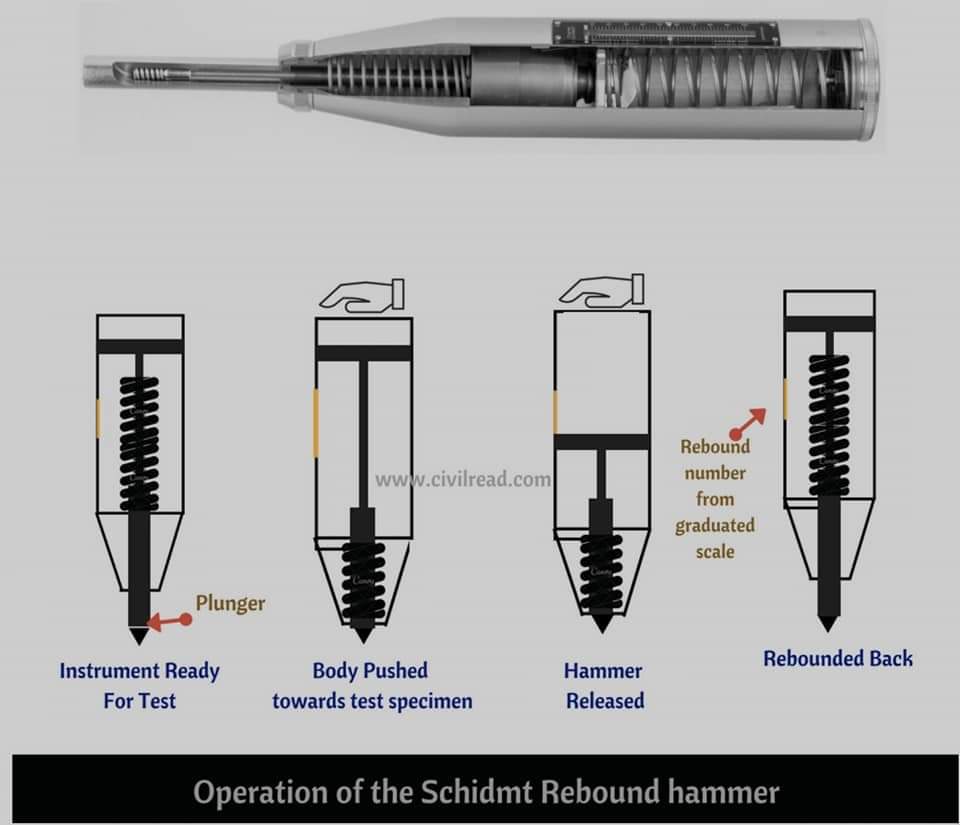 အပြင်ထွက်နေတဲ့ ပလန်ဂျာကို ကွန်ကရိမျက်နှာပြင်ပေါ် ဖိခြင်းအားဖြင့် စွမ်းအင်ကိန်းသေပေးနိုင်သော စပရင်ဖြင့်ထိမ်းထားသည့် ဒြပ်ထုက ပြန်ကန်ထုတ်သည့် အရွေ့ကို တိုင်းတာခြင်းဖြစ်သည်၊ အရွေ့ကို အညီအမျှပိုင်းထားသော ပေတံအမှတ်အသားမှရယူသည်၊ rebound number သို့မဟုပ် rebound index ဟုခေါ်သည်။