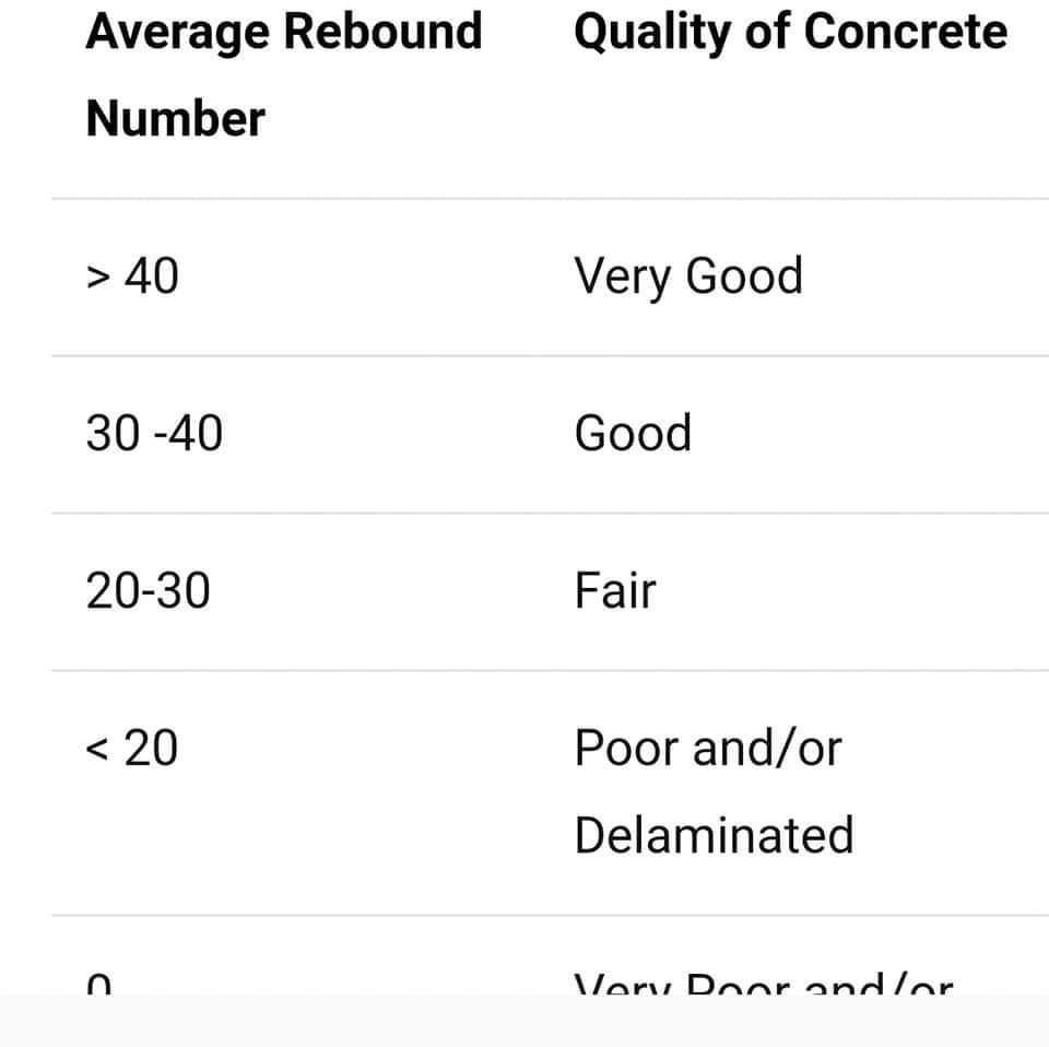 အမှန်စင်စစ် rebound index မှရသော ကွန်ကရိခံနိုင်ရည်အားကို #တရားဝင်အတည်ပြုမမှတ်ယူနိုင်ပေ၊ ၎င်းအမှတ် သည် ကွန်ကရိအကောင်း နှင့် အဆိုးကို နှိုင်းယှဥ်ရန် နှိုင်းရ တန်ဘိုးသာဖြစ်ပြီး၊ စံတိုက်ထားသော ကွန်ကရိအားကို အင်ဂျင်နီယာများ ကယူ၍ ဆက်လက်ပြီး စမ်းသပ်မှုလိုမလို ဆုံးဖြတ်သည်၊ rebound index ၂၀ မှ ၃၀ အတွင်းကို သင့်သည်ဟုသတ်မှတ်သည်၊ ကွန်ကရိအရည်အသွေး ညံ့ဖျဥ်းသည်ဟု (< ၂၀) ယူဆပါက ထိုနေရာမှ ကွန်ကရိကို ဖြတ်ထုတ်၍ (core drill) ဆလင်ဒါပုံ ကွန်ကရိ နမူနာကို စံစစ်ဆေးမှုများအတိုင်း စမ်းသပ်ရမည်။