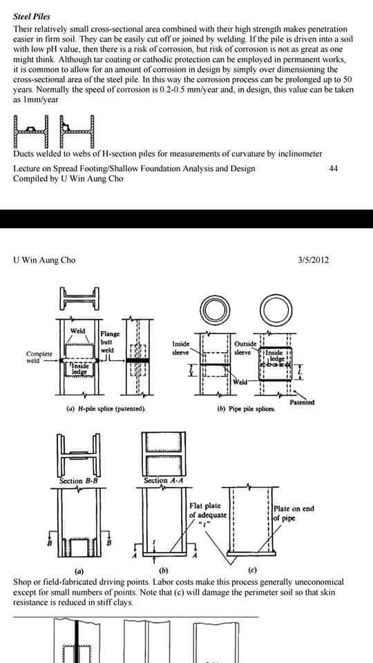 pH level မြင့်သော မြေတွင် သံမဏိ ပိုင်တိုင်များ (structural steel piles) အ သုံးပြုရာတွင် သံချေးတက်ခြင်းကြောင့် တနှစ်လျင် 0.2 to 0.5 mm ထိ သံချောင်းသည် ပါးသွားနိုင်ပေသည်၊ ထိုအခါ သံချောင်း ၏ ဖြတ်ပိုင်း ဧရိယာ လျော့နဲလျက် ခံနိုင်ရည်အား ကျဆင်းသွားလေသည်၊ ဒီဇိုင်းတွက်ရာတွင် (corrosion rate) 1mm/yr နှုန်းဖြင့်ခန့်မှန်းလျက် အရွယ်အစား ပိုကြီးသော သံမဏိချောင်း အရွယ်အစားကို ရွေးချယ်သင့်ပေသည်။