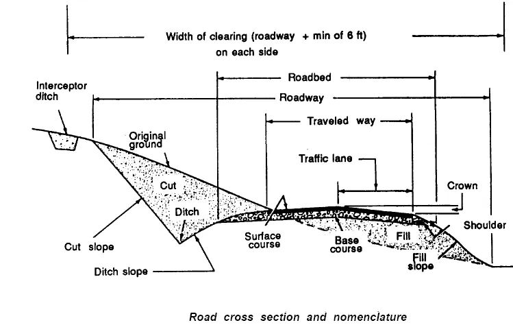 Road cross section and nomenclature