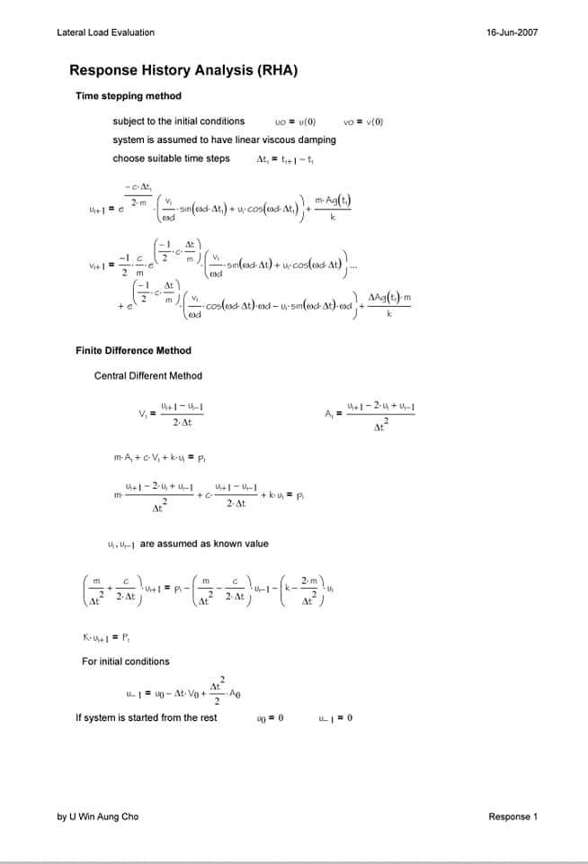 ကိုအခြေခံ ၍သတ်မှတ်ခြင်း ဖြစ်သည်၊ အဆောက်အဦ တုံခါသောအခါ အသွားအပြန် တခေါက် ရွေ့လျားတုံခါရန် ကြာချိန်ကို T ဖြင့်သတ်မှတ်သည်၊ စက္ကန့် ဖြစ်သည်၊ အထက်အောက် အလွှာလိုက် တည်ဆောက်ထားသော multi story building တခုတွင် တလွှာတက်သွားတိုင်း လွှဲခွင်ကြာချိန် ၀.၁ စက္ကန့် တိုးသည်ဟု ခန့်မှန်းနိုင်သည်၊ ထို့ကြောင့် ၆ထပ်အဆောက်အဦ၏ T သည် 0.6s ခန့်ဖြစ်၍ ၁၀ ထပ် အဆောက်အဦသည် T = 1s ခန့်ဖြစ်သည်။